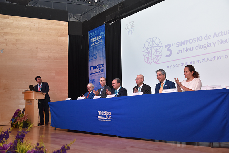 Por tercer año consecutivo, Médica Sur en alianza con Mayo Clinic presentó el simposio “Actualidades en Neurología y Neurocirugía”, los pasados 4 y 5 de octubre. Este evento académico, realizado en el Auditorio Médica Sur, reunió a 24 profesores nacionales e internacionales expertos en Neurología y Neurocirugía y sus diversas ramas para presentar más de 45 conferencias y 10 talleres de casos clínicos.