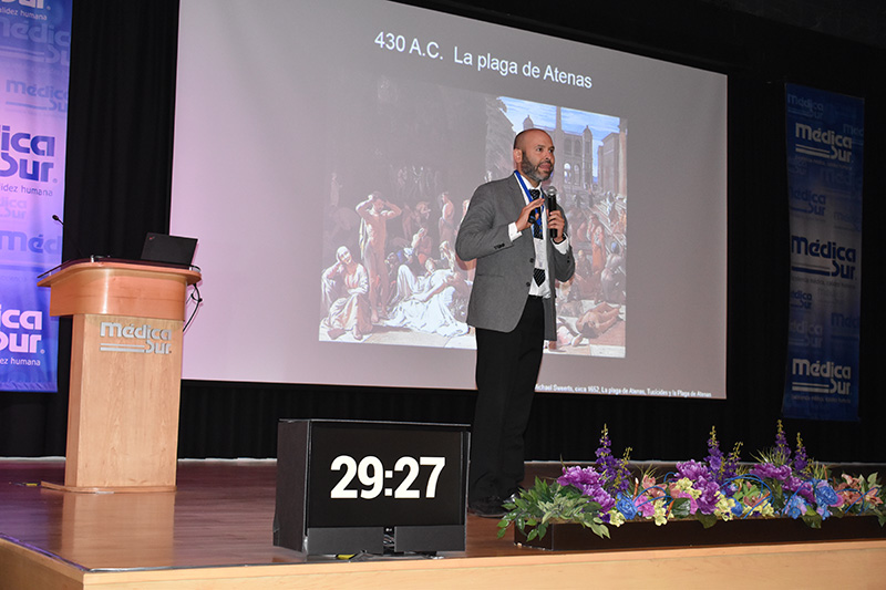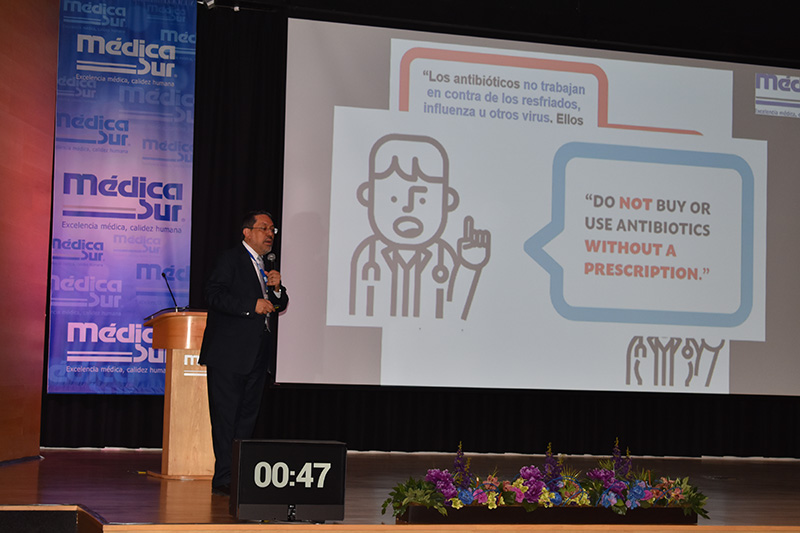 El Dr. Octavio González Chon, Director Médico de Médica Sur, dio la bienvenida a los asistentes y mencionó que este evento académico fue planeado con muchos meses de anticipación para elegir los temas de relevancia y trascendencia actual en la práctica de medicina interna.