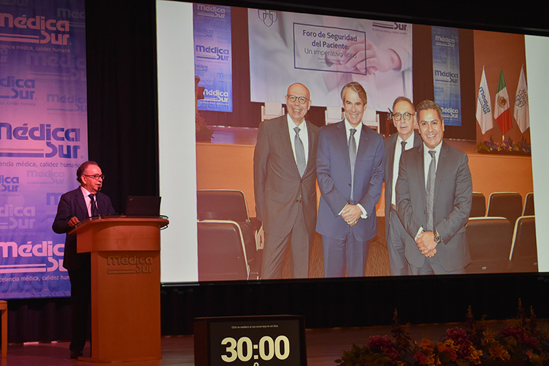 El presídium estuvo integrado por el Lic. Juan Carlos Griera, Director General de Médica Sur, el Dr. Marcelo F. Vela, Gastroenterólogo en la Clínica Mayo y Director de este curso, el Dr. Guillermo Ruiz Argüelles, Gobernador del American College of Physicians, la Dra. Carmen Zavala, Directora Académica de Médica Sur y la Dra. Sandra García, Directora de Medicina y Hospitalización de Médica Sur.